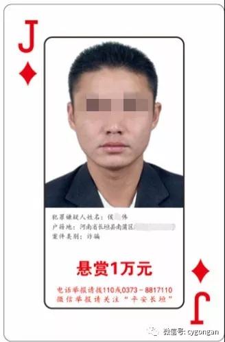 2018年1月6日,长垣微警局发布2018版扑克牌通缉令。继第一名逃犯“方片4”落网后,1月15日凌晨mobile365365又将“方片11”侯某伟在安阳某小区抓获归案。