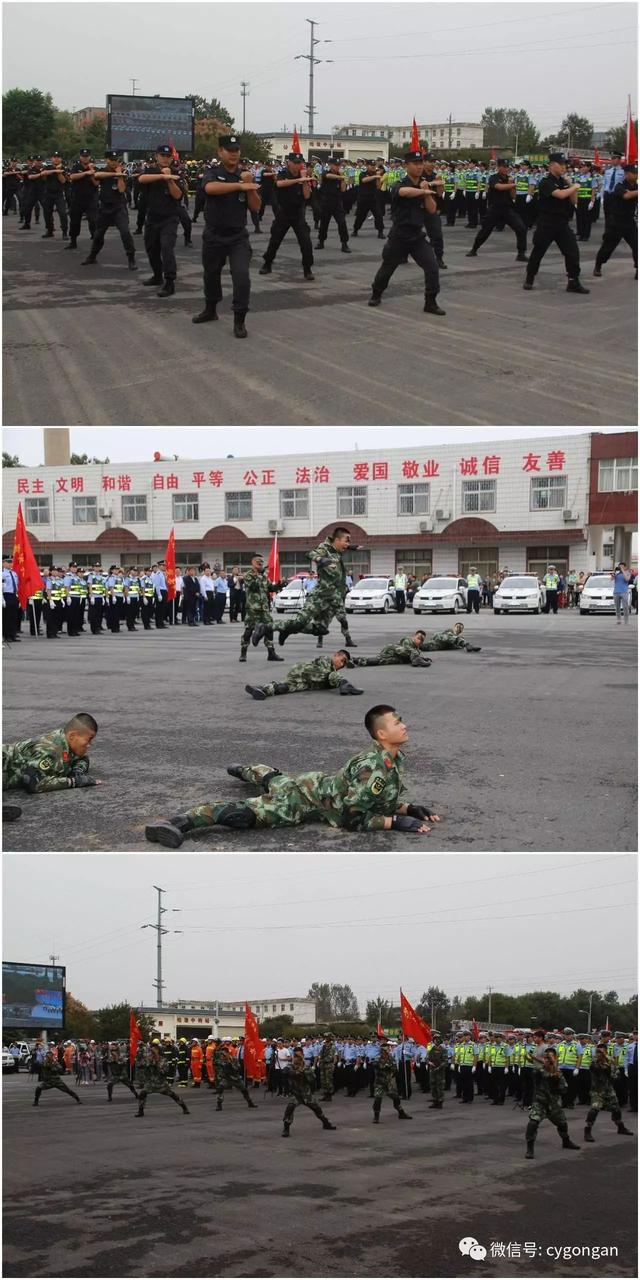 参会人员组成的12个方阵精神抖擞,英姿勃发尽展雄风。特巡警大队、战训大队、武警、消防等警种先后进行了警体拳展示、突发性暴恐事件处置演练、武警擒敌术、警犬服从、实用与障碍科目表演。动作规范、气势恢宏,充分体现了长垣公安民警和消防、武警官兵训练有素、能征善战的过硬本领和不畏艰险、顽强拼搏的精神风貌。